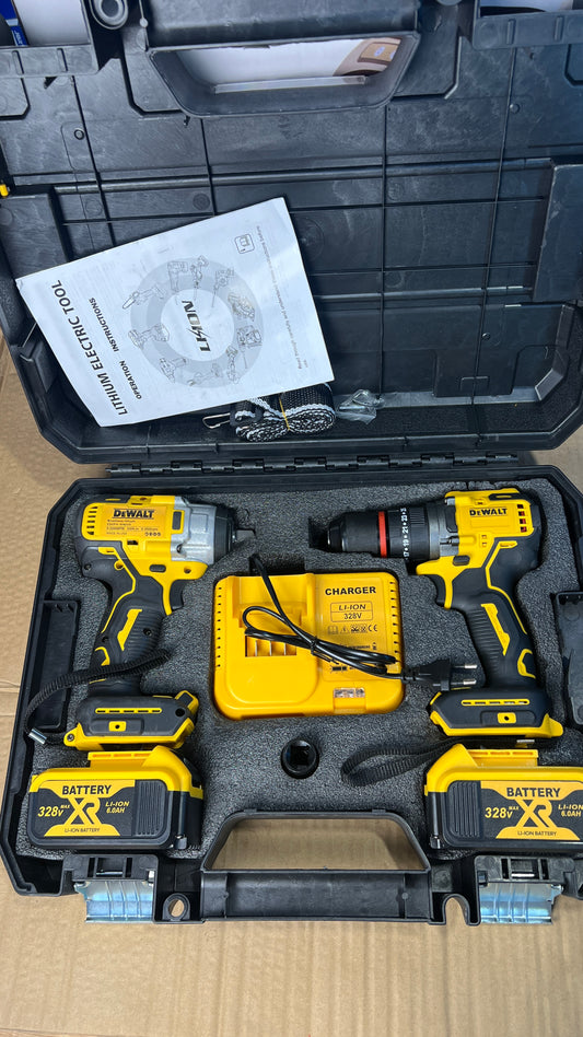 DeWalt 328V XR Drill & Impact Wrench Set | Dual Battery Power Tool Kit